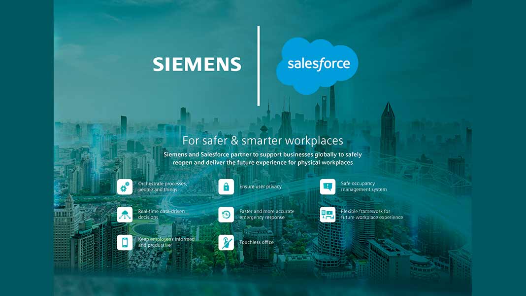 H Salesforce και η Siemens ανακοίνωσαν μια στρατηγική συνεργασία για την ανάπτυξη μιας νέας τεχνολογικής σουίτας για τους χώρους εργασίας που θα υποστηρίξει τις επιχειρήσεις παγκοσμίως προκειμένου να επαναλειτουργήσουν με ασφάλεια και να προσφέρουν την εμπειρία του μέλλοντος στους φυσικούς χώρους εργασίας. Η συνεργασία θα συνδυάσει το Work.com, της Salesforce που υποστηρίζεται από το Customer 360 με τις λύσεις Smart Infrastructure της Siemens, συμπεριλαμβανομένων των Comfy και Enlighted, για να οργανώσει τις διαδικασίες, το δυναμικό και τα αντικείμενα που είναι απαραίτητα για τη δημιουργία ασφαλών, συνδεδεμένων χώρων εργασίας για το μέλλον.