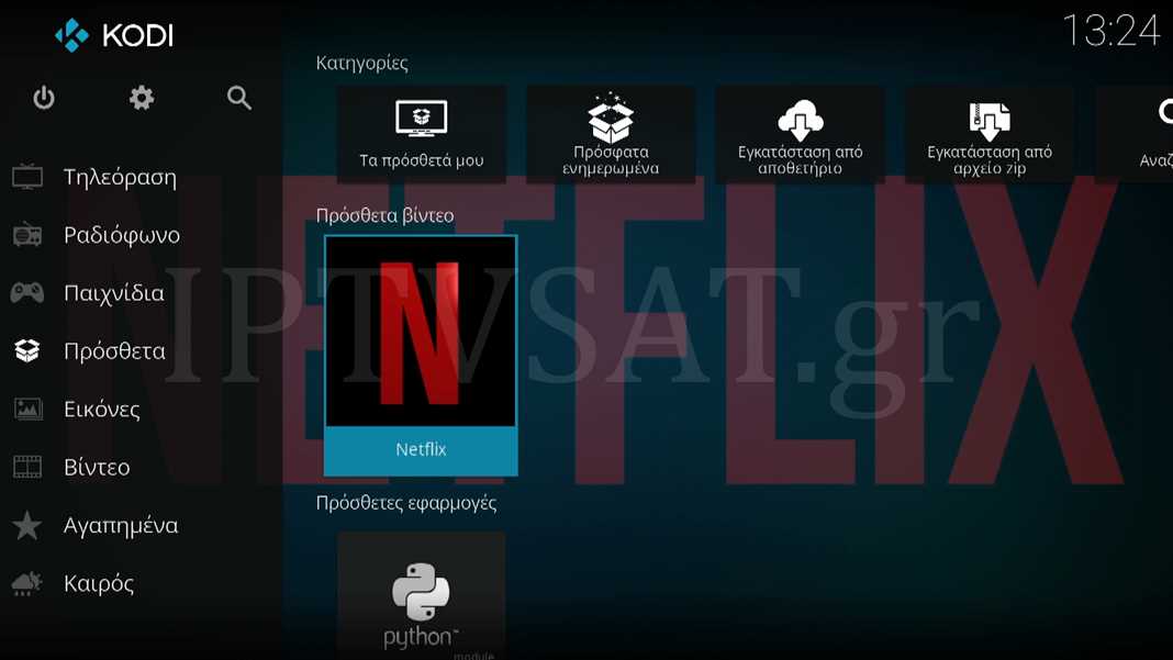 - Πλέον, μπορείτε να βρείτε το Neflix στη διαδρομή Πρόσθετα -> Πρόσθετα βίντεο.