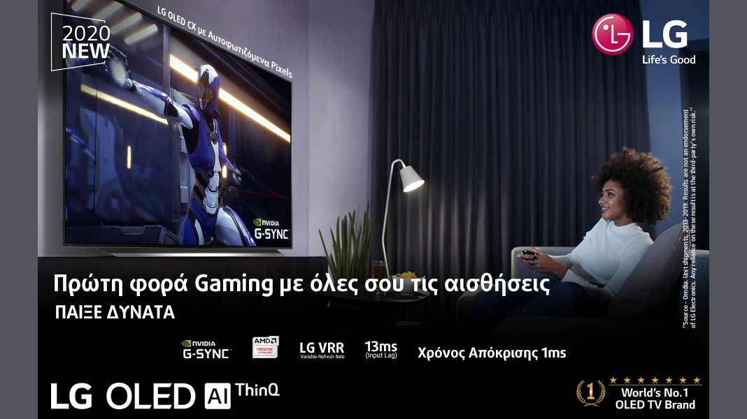 Η CX τηλεόραση της LG εξασφαλίζει ταχύτερο χρόνο απόκρισης συγκριτικά με μια συμβατική τηλεόραση LED, χάρη στη δύναμη των 100 αυτοφωτιζόμενων pixels[1] που αναπαράγουν κάθε χρώμα ακριβώς όπως θα έπρεπε και προσφέρουν ασυναγώνιστη λεπτομέρεια σε κάθε καρέ του δευτερολέπτου, δίνοντας τη δυνατότητα στους gamers να απολαμβάνουν τα παιχνίδια HDR στο έπακρο. Χάρη στη συμβατότητά ττης με την NVIDIA G-SYNC® τεχνολογία, όλα τα βιντεοπαιχνίδια θα έχουν πιο καθαρή και ομαλή εικόνα, καλύτερη απόκριση, χωρίς τρεμόπαιγμα και διακυμάνσεις στη φωνή.