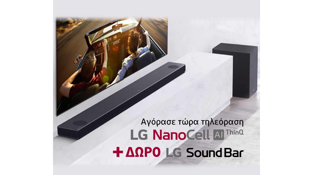 Η LG Electronics (LG) ανταμείβει την επιλογή των καταναλωτών και τους προσφέρει ένα μοναδικό LG Soundbar με την αγορά μιας LG NanoCell AI ThinQ SM90 τηλεόρασης, για να απολαύσουν μια ανεπανάληπτη οπτικοακουστική εμπειρία. Συγκεκριμένα, από τη Δευτέρα, 03 Φεβρουαρίου έως και το Σάββατο, 29 Φεβρουαρίου 2020 ή μέχρι εξαντλήσεων των αποθεμάτων, οι καταναλωτές με την αγορά μιας SM90 τηλεόρασης 65, 55 ή 49 ιντσών, μπορούν να αποκτήσουν το Soundbar SL7YF, SL5Y και SL4Y αντίστοιχα.