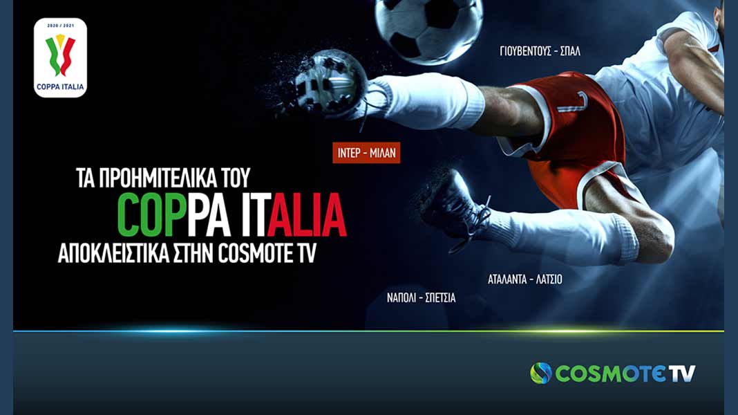 Η προημιτελική φάση του Coppa Italia, που θα φιλοξενηθεί μαζί με τα ημιτελικά και τον μεγάλο τελικό αποκλειστικά στην COSMOTE TV, σηκώνει αυλαία την Τρίτη 26/1 στις 21.45 στο COSMOTE SPORT 2HD. Πρώτος αγώνας, το Derby della Madonnina, δηλαδή, η συνάντηση των δυο εκπροσώπων του Μιλάνου, Ίντερ και Μίλαν.