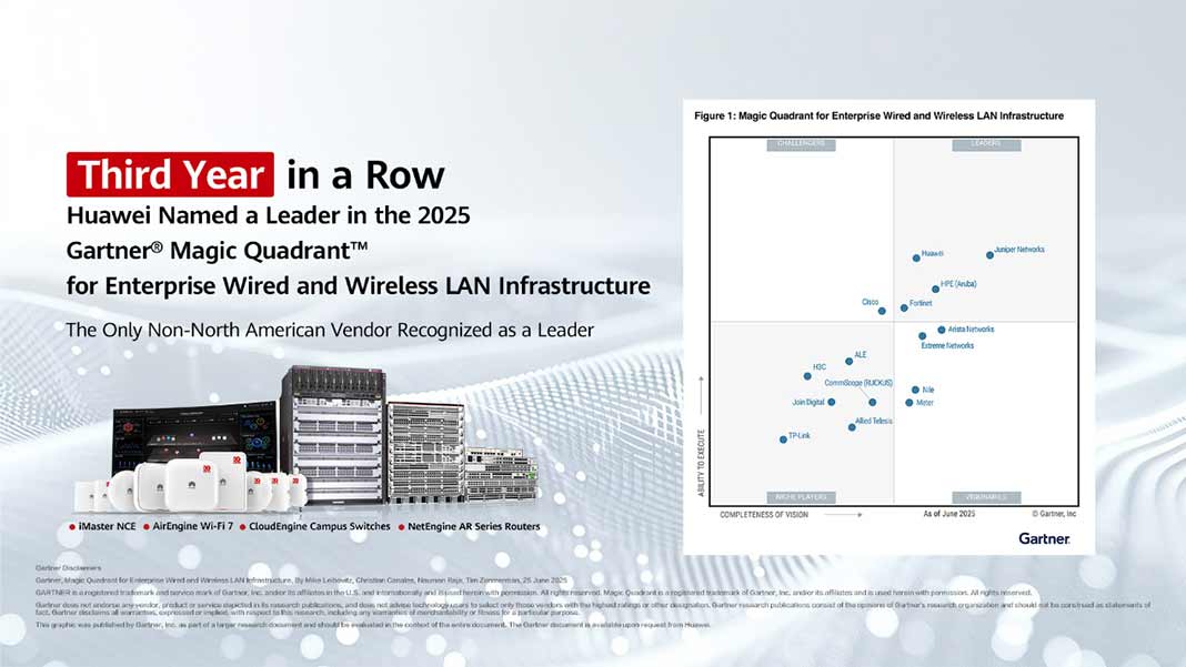 Για τρίτη συνεχή χρονιά η Huawei ανακηρύχθηκε στο Gartner® Magic Quadrant™ 2025 «Ηγέτης» στις Ενσύρματες και Ασύρματες Υποδομές LAN για Επιχειρήσεις.