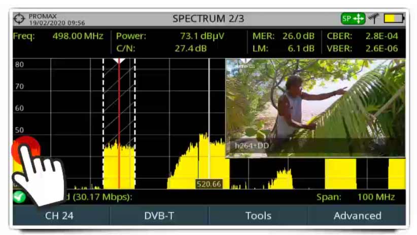 Οι περισσότεροι από τους αναλυτές HD RANGER και RANGER Neo της PROMAX, διαθέτουν οθόνη αφής που διευκολύνει τη λειτουργία του αναλυτή φάσματος, επειδή με μόνο τρεις χειρονομίες, έχουμε πρόσβαση στο σύνολο των πιο κοινών επιλογών: