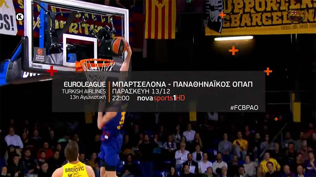 22:00 Μπαρτσελόνα – Παναθηναϊκός ΟΠΑΠ, Novasports1HD και ηχητικά στο Novasports.gr σε περιγραφή του Χρήστου Καούρη