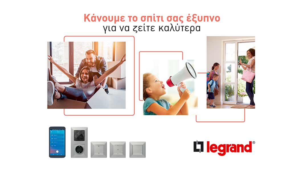 Η Legrand, ο παγκόσμιος ειδικός στις ηλεκτρικές και ψηφιακές κτιριακές υποδομές, κάνει τη ζωή σας πιο εύκολη, ενισχύοντας την «έννοια» της κατοικίας με το «έξυπνο» σπίτι!