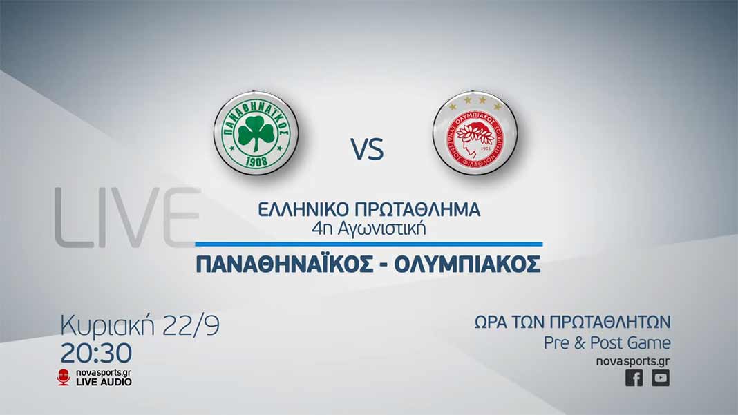 18:30 Ώρα των πρωταθλητών – Pre Game Show Παναθηναϊκός – Ολυμπιακός, Novasports1HD και διαθέσιμα LIVE στην ιστοσελίδα & στο YouTube κανάλι του Novasports σε παρουσίαση των Γιαννίκου Δούσκα και Λίλας Κουντουριώτη
