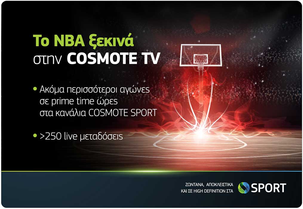 Οι συνδρομητές της COSMΟΤΕ TV θα έχουν στη διάθεσή τους πάνω από 250 live μεταδόσεις τον χρόνο και καθημερινή δράση καθ’ όλη τη διάρκεια της σεζόν από τους κορυφαίους μπασκετμπολίστες του κόσμου, όπως οι LeBron James, Stephen Curry, Kevin Durant, James Harden, Russell Westbrook, καθώς και τους Έλληνες «εκπροσώπους» Γιάννη Αντετοκούμπο, Κώστα Κουφό, και τον Ελληνοαμερικανό, Τάιλερ Ντόρσεϊ. Παράλληλα, θα έχουν τη δυνατότητα να παρακολουθήσουν το Σάββατο και την Κυριακή τους αγώνες της primetime ζώνης, καθώς και όλες τις σημαντικές στιγμές της σεζόν, όπως τα Christmas Day Games, το NBA All Star Game, τα play-off του πρωταθλήματος και τους τελικούς.