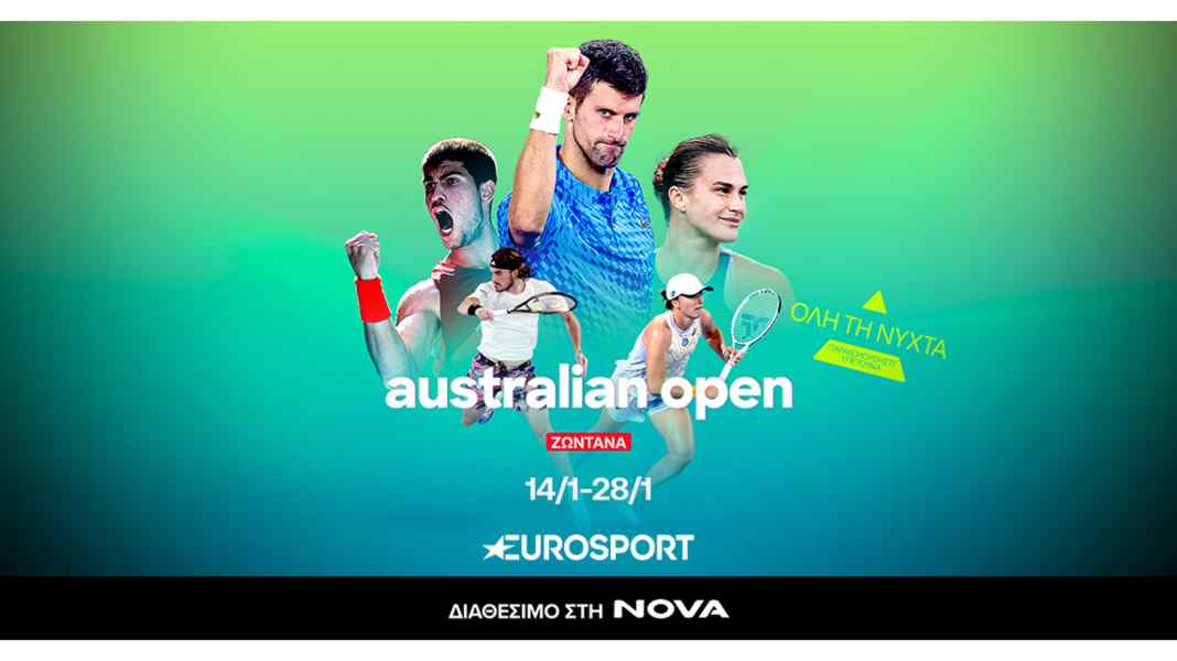 Τα κανάλια Eurosport μεταφέρουν στους φίλους του τένις την απόλυτη εμπειρία του πρώτου Grand Slam της σεζόν, του 112ου Australian Open και οι συνδρομητές της Nova θα έχουν την ευκαιρία να απολαύσουν τη διοργάνωση που ξεκινάει την  Κυριακή 14 Ιανουαρίου και ολοκληρώνεται την Κυριακή 28 Ιανουαρίου στη Μελβούρνη με τη συμμετοχή του Στέφανου Τσιτσιπά και της Μαρίας Σάκκαρη.