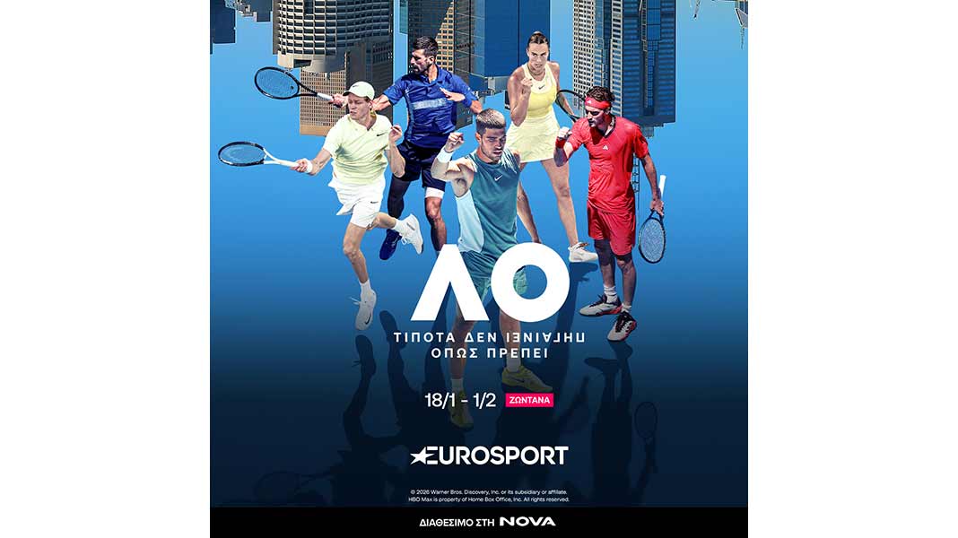 Τα κανάλια Eurosport μεταφέρουν στους φίλους του τένις την απόλυτη εμπειρία του πρώτου Grand Slam της σεζόν, του 114ου Australian Open και οι συνδρομητές της Novaθα έχουν την ευκαιρία να απολαύσουν τη διοργάνωση που ξεκινάει στη Μελβούρνη την Κυριακή 18 Ιανουαρίου με τη συμμετοχή του Στέφανου Τσιτσιπά και της Μαρίας Σάκκαρη, και ολοκληρώνεται την Κυριακή 1η Φεβρουαρίου.
