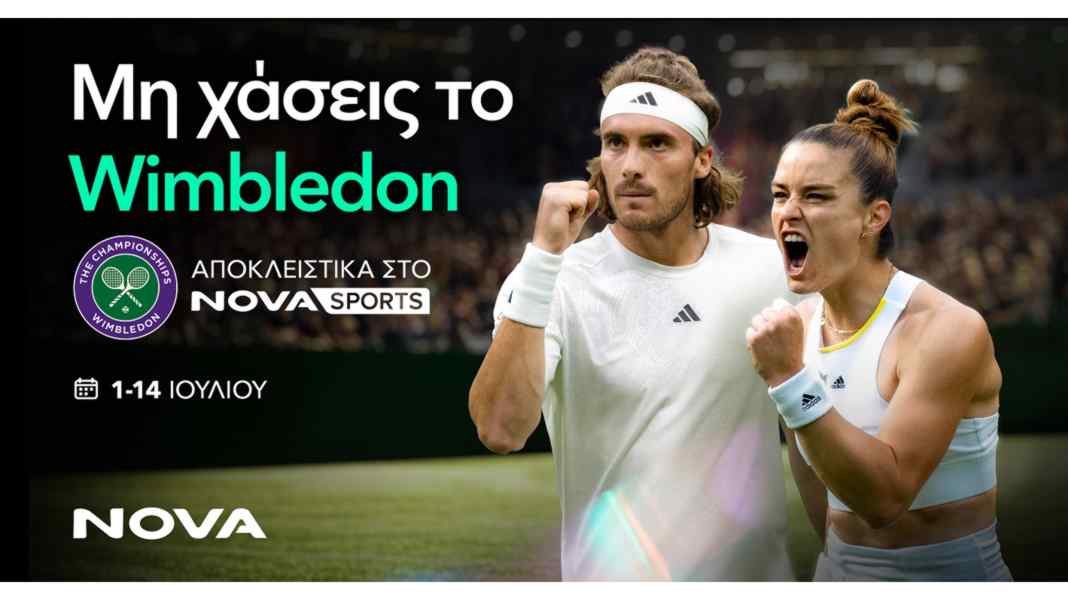 Ο Στέφανος Τσιτσιπάς, η Μαρία Σάκκαρη και όλα τα μεγάλα ονόματα του παγκοσμίου τένις υπόσχονται θέαμα υψηλού επιπέδου στο 137ο Wimbledon αποκλειστικά στα κορτ του Novasports! Οι φίλοι του τένις από τη Δευτέρα 1 Ιουλίου έως και την Κυριακή 14 Ιουλίου, θα έχουν την ευκαιρία να απολαύσουν, σε αποκλειστική μετάδοση και με τη σφραγίδα της κορυφαίας δημοσιογραφικής ομάδας του Novasports, το φημισμένο τουρνουά τένις Wimbledon με τις σπουδαίες μονομαχίες στα κορτ της Αγγλίας.