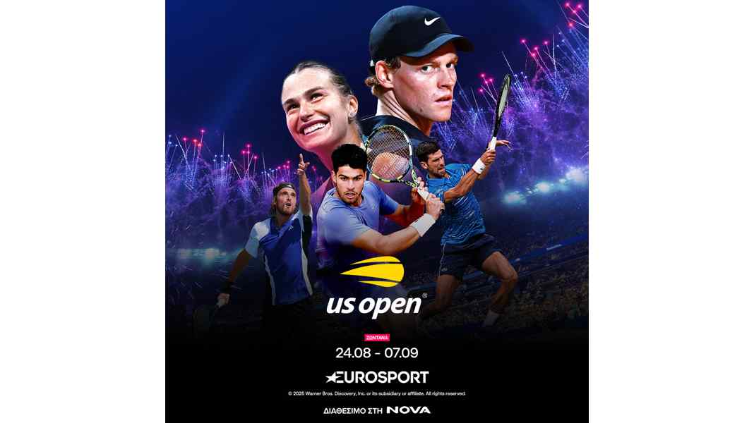 Τα κανάλια Eurosport μεταφέρουν στους φίλους του τένις την απόλυτη εμπειρία του 4ου και τελευταίου Grand Slam της σεζόν, του 145US Open. Οι συνδρομητές της Nova θα έχουν την ευκαιρία να απολαύσουν τη διοργάνωση, που διεξάγεται από την Κυριακή 24 Αυγούστου έως και την Κυριακή 7 Σεπτεμβρίου, στα ανοιχτά κορτ σκληρής επιφάνειας του USTA Billie Jean King National Tennis Center στην Νέα Υόρκη, με τη συμμετοχή του Στέφανου Τσιτσιπά και της Μαρίας Σάκκαρη και με το παραδοσιακό ταμπλό 128 παικτών σε άνδρες και γυναίκες.