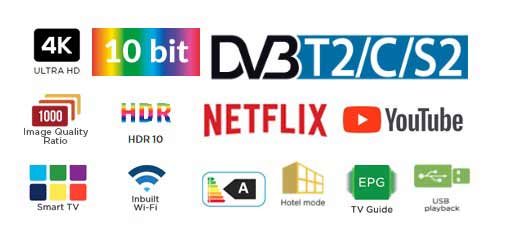 Οι νέες Smart τηλεοράσεις της STRONG είναι 4K Ultra HD, παρέχουν εκπληκτικά καθαρό ήχο και ρεαλιστικές εικόνες, ενώ διαθέτουν ενσωματωμένο τριπλό tuner (DVB-C/T2/S2) και Wi-Fi για εύκολη ασύρματη σύνδεση. Τα παραπάνω σημαίνουν ότι εκτός από τα επίγεια ψηφιακά κανάλια σε DVB-T/T2/HEVC, μπορείτε να λαμβάνετε και δορυφορικά με σύνδεση κατάλληλου δορυφορικού κατόπτρου, ενώ το DiSEqC 1.0 επιτρέπει τη μεταγωγή μεταξύ μέχρι 4 δορυφόρων. Από πλευράς δικτύωσης, εκτός από ενσύρματη μέσω Ethernet, μπορεί να πραγματοποιείται και ασύρματα με το ενσωματωμένο WiFi.