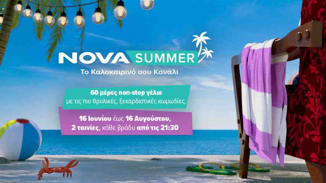 Η Nova, μέλος της United Group, του κορυφαίου παρόχου τηλεπικοινωνιών και media στη Νοτιοανατολική Ευρώπη, υπόσχεται φέτος ένα καλοκαίρι γεμάτο γέλιο με το Pop Up κανάλι Novasummer και 45 απολαυστικές ταινίες! Από τις 16 Ιουνίου έως και τις 16 Αυγούστου, το Novasummer θα κρατά συντροφιά στους συνδρομητές της Nova, με δύο ταινίες back to back κάθε βράδυ από τις 21:30 με τους μεγαλύτερους αστέρες του Hollywood να υπόσχονται ξεκαρδιστικές στιγμές.