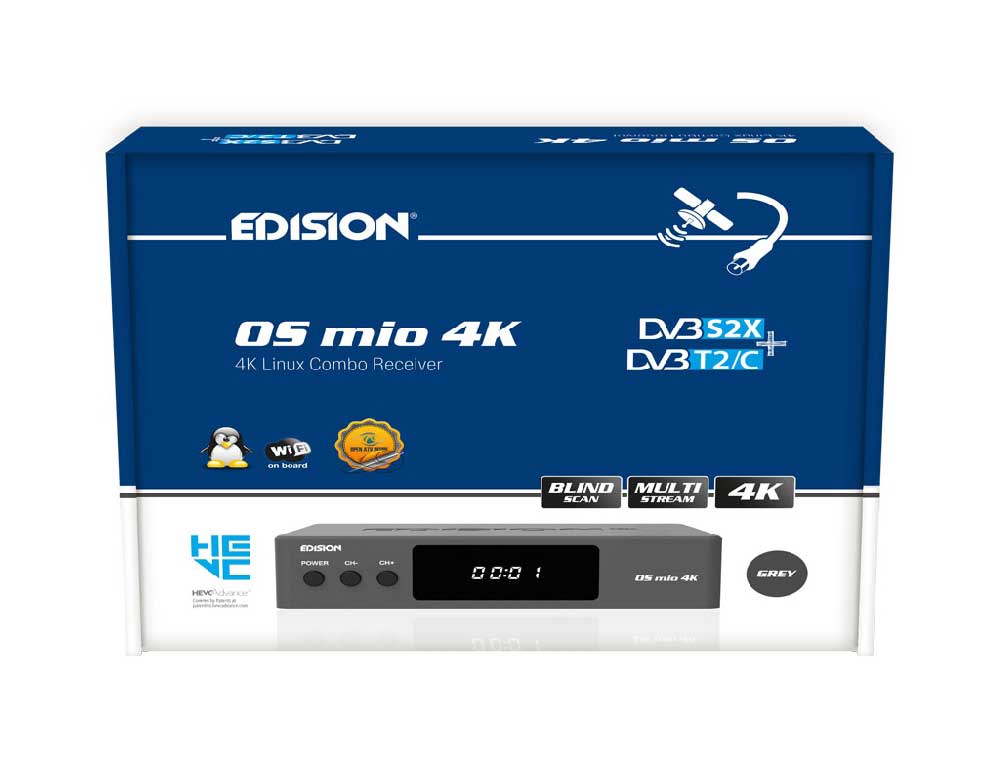 Από την Edision, έχουμε πλέον και 4Κ δέκτη Linux E2 και πρόκειται για τον OS MIO 4K S2X + T2/C Grey. Ο νέος δέκτης παρέχει ανάλυση 4Κ UHD και κατά συνέπεια είναι συμβατός με HEVC, ενώ διαθέτει tuners DVB-S2X και DVB-T2/C, αποτελώντας έτσι έναν πανίσχυρο δέκτη Combo, ο οποίος μάλιστα διαθέτει Multi Stream T2MI Tuner & Blindscan. Επίσης, ο OS MIO έχει εξαιρετικά compact και καλαίσθητη εμφάνιση, ενώ είναι διαθέσιμος σε κομψό σασί αλουμινίου σε 2 διαφορετικά χρώματα και με στοιχεία τα οποία περιλαμβάνουν: λειτουργικό E2 Linux, DVB-S2X και DVB-T2/C Τuner, 4K UHD ανάλυση, Multi Stream T2MI Tuner, Blindscan, Web browser και υποστήριξη HbbTV, επεξεργαστή Dual Core ARM στα 1.5 GHz, 8GB eMMC/RAM 2GB DDR4 2400MΗz μνήμη flash, Dual Band 2×2 Wi-Fi 802.11ac 5G/2.4G MU-MIMO με 2 εξωτερικές, αποσπώμενες κεραίες (περιλαμβάνονται), ενσωματωμένο Bluetooth 2.1/3.0/4.0, είναι 4K UHD Multimedia Player, ενώ συνοδεύεται από το εξαιρετικό, εργονομικό αλουμινένιο τηλεχειριστήριο UNIVERSAL 2-σε-1 στο χρώμα του δέκτη!