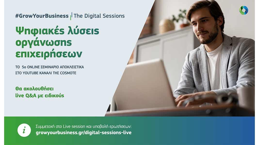 Ο τρίτος κύκλος #GrowYourBusiness – The Digital Sessions είναι μια σειρά online σεμιναρίων για μικρομεσαίες επιχειρήσεις και ελεύθερους επαγγελματίες, που φιλοξενείταιστο YouTube κανάλι της COSMOTE, προσαρμοσμένος στις ιδιαίτερες απαιτήσεις της εποχής.Ο στόχος των online σεμιναρίων είναι οι συμμετέχοντες να γνωρίσουν τα εργαλεία και τις τακτικές που θα τους βοηθήσουν να αναπτυχθούν, με όχημα την τεχνολογία. Παράλληλα, μέσω των Live «Ερωτήσεων & Απαντήσεων», που ακολουθούν των online σεμιναρίων, οι συμμετέχοντες θα έρχονται σε επαφή με ειδικούς σε τομείς όπως είναι η ψηφιακή παρουσία, το ηλεκτρονικό εμπόριο, το digital marketing κ.α., οι οποίοι απαντούν στις ερωτήσεις τους και τους κατευθύνουν με πρακτικές συμβουλές.