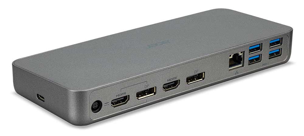 Το Acer USB Type-C Dock D501 (ADK020) απλοποιεί τη διαδικασία της σύνδεσης μίας συσκευής Chrome OS με έως και τρεις εξωτερικές οθόνες1,2 μέσω θυρών2 DisplayPort και HDMI4, καθιστώντας το μία εξαιρετική επιλογή για χρήστες που εργάζονται με μεγάλο όγκο πληροφορίας και χρειάζονται περισσότερο χώρο στην οθόνη, σε σχέση με αυτόν που μπορεί να προσφέρει μία μεμονωμένη συσκευή. Έξι θύρες USB (4x USB 3.1 Gen 1 Type-A και 2x USB 3.1 Gen 2 Type-A) προσφέρουν την ευελιξία σύνδεσης οποιουδήποτε πρόσθετου περιφερειακού απαιτεί η κάθε εργασία. Υποστηρίζει επίσης, USB-C Power Delivery για τη φόρτιση συσκευών μέσω σύνδεσης USB-C και περιλαμβάνει ειδική θύρα Gigabit Ethernet για ενσύρματο networking.