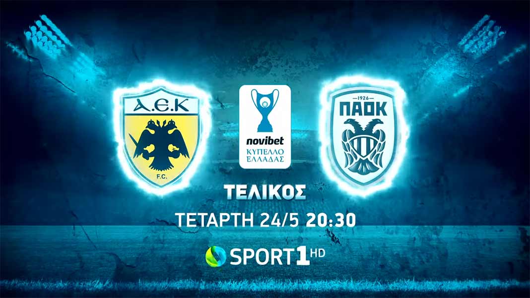 Έφτασε η στιγμή για τον μεγάλο τελικό του Κυπέλλου Ελλάδας Novibet, ο οποίος θα μεταδοθεί ζωντανά και αποκλειστικά από την COSMOTE TV την Τετάρτη 24 Μαΐου στις 20:30, στο COSMOTE SPORT 1HD. Η «μονομαχία» ανάμεσα σε ΑΕΚ και ΠΑΟΚ θα πραγματοποιηθεί στο «Πανθεσσαλικό Στάδιο» και ενόψει του ντέρμπι, η έμπειρη δημοσιογραφική ομάδα των καναλιών COSMOTE SPORT έχει ετοιμάσει πλούσια κάλυψη, με ειδικές εκπομπές και ζωντανές συνδέσεις με τον αγωνιστικό χώρο.
