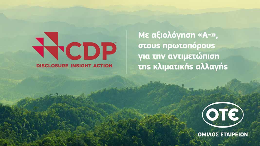 Με «Α-» βαθμολογήθηκε για πρώτη φορά ο ΟΤΕ από το διεθνή μη κερδοσκοπικό οργανισμό CDP (πρώην Carbon Disclosure Project) για τον τρόπο που δημοσιοποιεί και διαχειρίζεται τις επιπτώσεις από τις δραστηριότητές του στην κλιματική αλλαγή. Για το 2021, ο ΟΤΕ βρίσκεται στην κατηγορία «Leadership Α/Α-» μεταξύ 12.000 εταιρειών που αξιολογήθηκαν και είναι μία από τις δύο εταιρείες στην Ελλάδα που συγκαταλέγονται σε αυτήν την κατηγορία. Η φετινή κατάταξη τοποθετεί τον ΟΤΕ αρκετά υψηλότερα σε σχέση με τον Ευρωπαϊκό μέσο όρο αλλά και αυτόν του κλάδου των ΜΜΕ, τηλεπικοινωνιών και υπηρεσιών data center, στον οποίο συγκαταλέγεται.