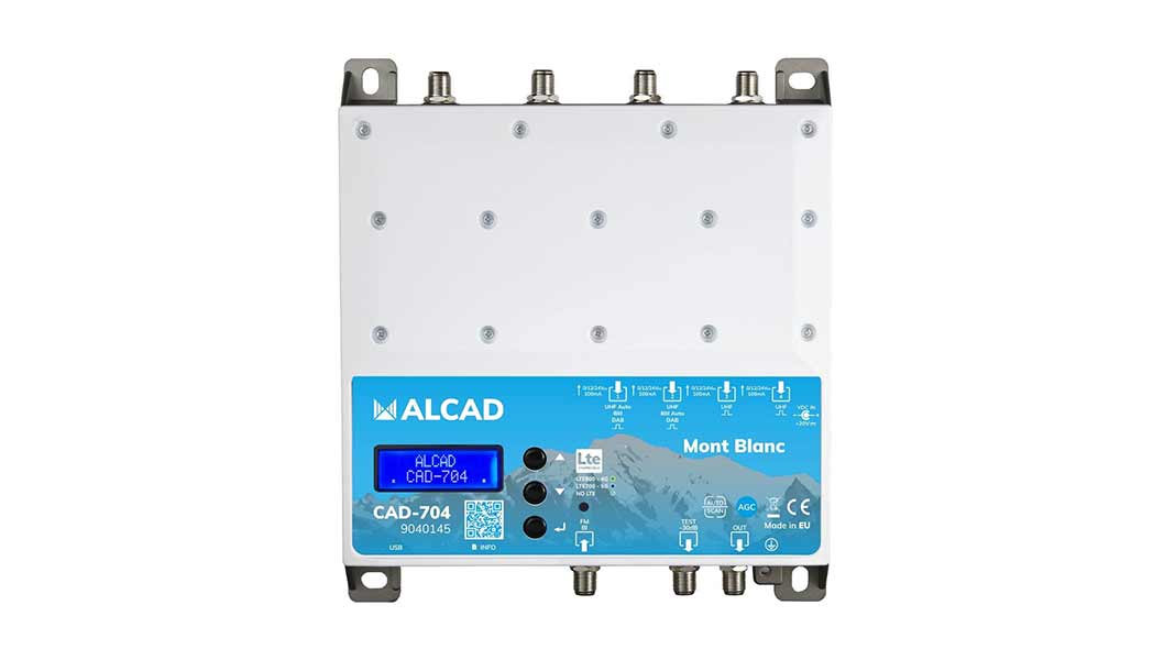 Η Alcad παρουσίασε ένα νέο μοντέλο ψηφιακού προγραμματιζόμενου ενισχυτή-headend, το CAD-704 το οποίο πραγματοποιεί φιλτράρισμα, μετατροπή συχνοτήτων και εξισορρόπηση καναλιών DVB-T/T2, ενώ είναι κατάλληλο για χρήση σε εγκαταστάσεις μικρών ή μεσαίων κτιρίων.