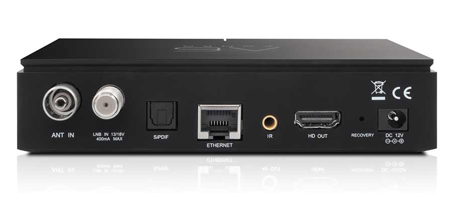 Από πλευράς συνδέσεων έχουμε ένα tuner DVB-S2, ένα υβριδικό T2/C, card reader, Micro SD (μέχρι 32 GB), ενώ οι συνδέσεις περιλαμβάνουν επίσης οπτική έξοδο ψηφιακού ήχου S/PDIF, Ethernet 100, IR, HDMI 2.0, οπή recovery, είσοδο για το παρεχόμενο εξωτερικό τροφοδοτικό 12 V και 2 θύρες USB 2.0.