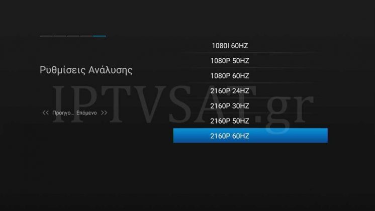 Στην εφαρμογή Setting του βασικού μενού, αποκτάτε πρόσβαση σε όλες τις ρυθμίσεις δικτύου, συστήματος και συσκευής. Στο Δίκτυο έχουμε τις ρυθμίσεις Δίκτυο WiFi, Δίκτυο LAN, Δικτυακό Αποθηκευ, DLNA, AirPlay και VPN. Στο Σύστημα έχουμε τις ρυθμίσεις PVR, Γλώσσα, Ημερομηνία και Ώρα, Αναβάθμιση, Επανεκκίνηση, Γονικές Ρυθμίσεις, Άλλες Ρυθμίσεις, Διεύθυνση Google, Download και Σχετικά, ενώ στο Συσκευή βρίσκουμε τις ρυθμίσεις Έξοδος A/V, Περιοχή Απεικόνισης και Αποθηκευτικό Μέσο.