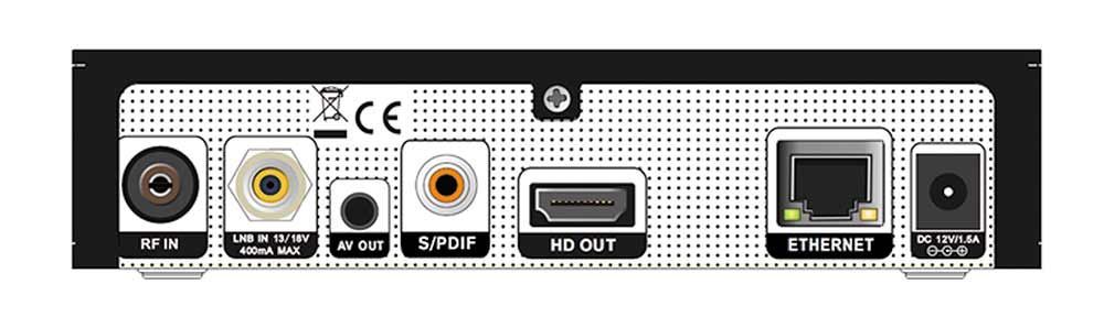 Οι συνδέσεις στη πίσω όψη, περιλαμβάνουν – εκτός από τα 2 tuners S2X+T2/C – μία έξοδο AV σε mini jack, ομοαξονική έξοδο ψηφιακού ήχου S/PDIF, HDMI, Ethernet και την είσοδο για το παρεχόμενο εξωτερικό τροφοδοτικό. Στο πλάι βρίσκουμε επίσης 2 θύρες USB για σύνδεση εξωτερικού σκληρού δίσκου και εύκολη αναβάθμιση λογισμικού.