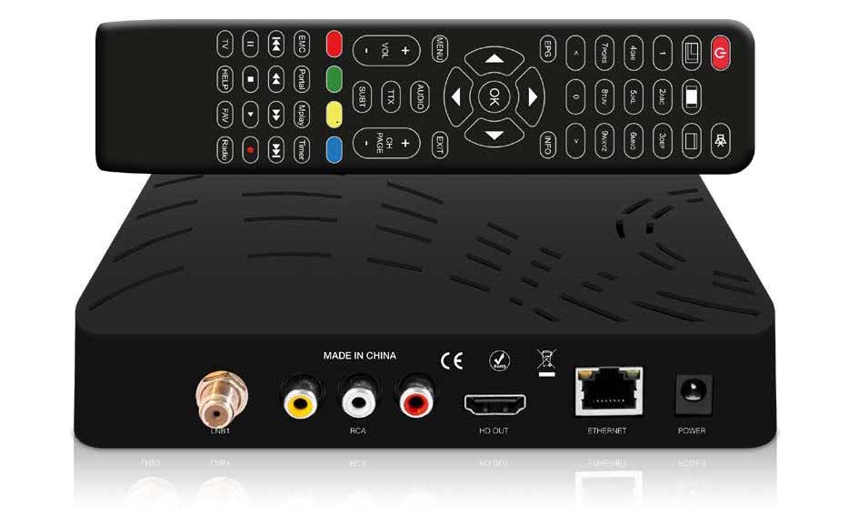 Από πλευράς συνδέσεων στη πίσω όψη , έχουμε μία είσοδο LNB με DVB-S/S2 tuner, HDMI, RCA Video/stereo Audio, θύρα Ethernet, είσοδο 12V/2A για το παρεχόμενο εξωτερικό τροφοδοτικό, καθώς και 2 x USB 2.0 για αναβαθμίσεις, εξωτερικό σκληρό δίσκο και λειτουργία media player.