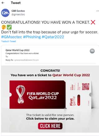 Το Παγκόσμιο Κύπελλο Ποδοσφαίρου 2022 στο Κατάρ είναι έτοιμο να ξεκινήσει! Από τις 20 Νοεμβρίου έως τις 18 Δεκεμβρίου, ένα από τα σημαντικότερα αθλητικά γεγονότα της φετινής χρονιάς θα προσελκύσει εκατοντάδες εκατομμύρια οπαδούς του ποδοσφαίρου από όλο τον κόσμο. Όμως, όπως έχουμε ξαναδεί, οι επιτήδειοι στο διαδίκτυο χρησιμοποιούν πάντα τον θόρυβο που περιβάλλει τέτοιες μεγάλες διοργανώσεις για να εξαπατήσουν.
