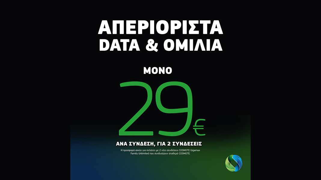 Προσφορά στα συμβόλαια κινητής COSMOTE: Απεριόριστα data και ομιλία για δύο συνδέσεις κινητής μόνο με 29€ η καθεμία