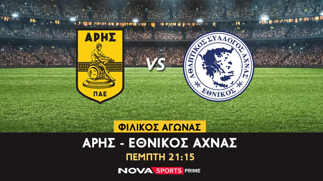 . Οι φίλοι του ποδοσφαίρου την Πέμπτη 20/7 στις 21:15 θα έχουν την ευκαιρία να δουν ζωντανά τον φιλικό αγώνα προετοιμασίας του Άρη με την κυπριακή ομάδα Εθνικό Άχνας που θα διεξαχθεί στο “Κλεάνθης Βικελίδης”. Ο αγώνας θα μεταδοθεί απευθείας από το Novasports Prime σε περιγραφή του Γιάννη Πάγκου και ρεπορτάζ του Ευγένιου Δαδαλιάρα.