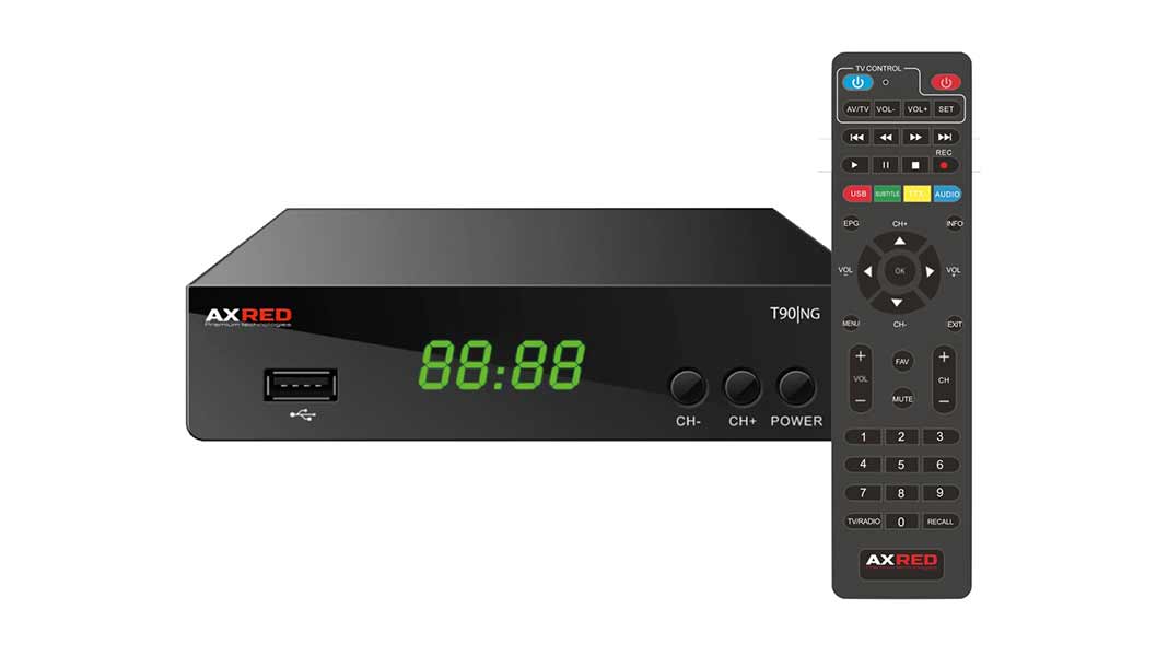 Ο επίγειος ψηφιακός δέκτης AXRED AX T90|NG συνοδεύεται από διπλό self learning τηλεχειριστήριο, υποστηρίζει 7ήμερο ηλεκτρονικό οδηγό προγράμματος, γονικό κλείδωμα, υπότιτλους και teletext. Τέλος, να αναφέρουμε ότι το αποθηκευτικό μέσο USB, μπορεί να διαθέτει σύστημα αρχείων FAT16/32, αλλά και NTFS.
