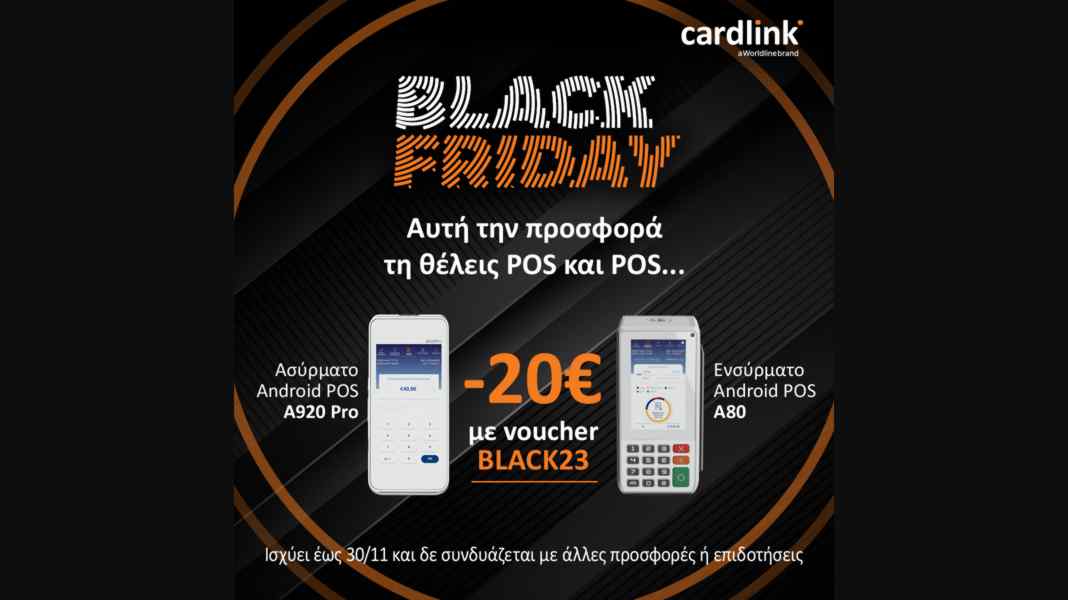 Η Black Friday στην Cardlink, μέλος της Worldline, του ηγέτη στην ευρωπαϊκή αγορά πληρωμών και υπηρεσιών διαχείρισης συναλλαγών, ξεκινά, με μοναδικές προσφορές στα πιο σύγχρονα Cardlink Android POS και την πλατφόρμα ασύρματης παραγγελιοληψίας, Cardlink maitre, από τις 13/11 μέχρι και τις 30/11.
