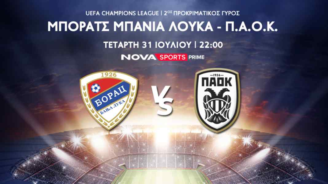 O πρωταθλητής Ελλάδας ΠΑΟΚ επιδιώκει τη διάκριση στο UEFA Champions League και αυτό θα γίνει αποκλειστικά στο «γήπεδο» του Novasports! Οι φίλοι του ποδοσφαίρου την Τετάρτη 31 Ιουλίου στις 22:00 θα έχουν την ευκαιρία να δουν ζωντανά και αποκλειστικά στο Novasports Prime και σε περιγραφή του Γρηγόρη Παπαβασιλείου τον επαναληπτικό αγώνα του «Δικέφαλου» του Βορρά κόντρα στη Μπόρατς Μπάνια Λούκα για τον Β’ προκριματικό γύρο του UEFA Champions League.