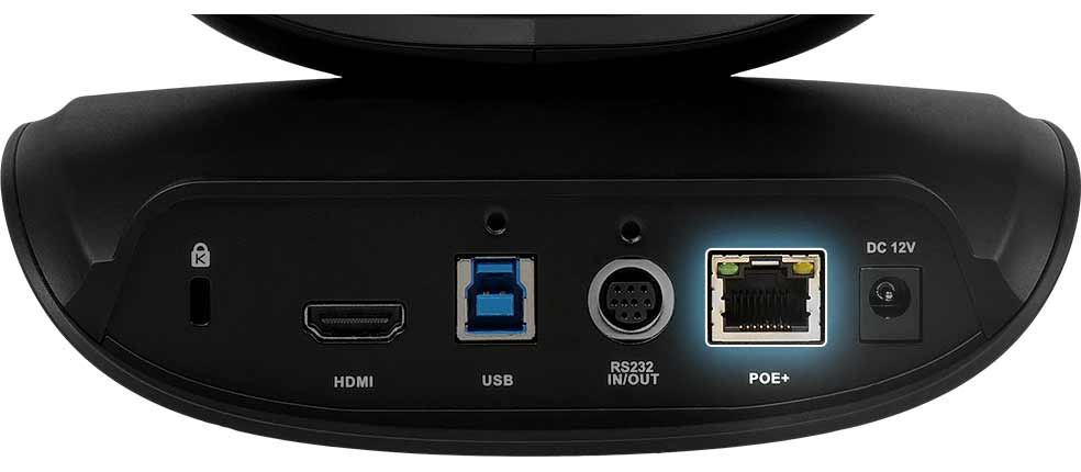 Η λειτουργία AVer Virtual Stream επιτρέπει την κατάργηση των συνδέσεων καλωδίων USB, καθιστώντας την CAM550 διαθέσιμη ως πηγή βίντεο κάμερας για εικονικές συσκέψεις μέσω μίας μόνο σύνδεσης ethernet. Επίσης, μια θύρα PoE+ απλοποιεί τη ρύθμιση και μειώνει το κόστος εγκατάστασης. (Η διαμόρφωση PoE+ υποστηρίζεται μόνο από το λειτουργικό σύστημα Windows).