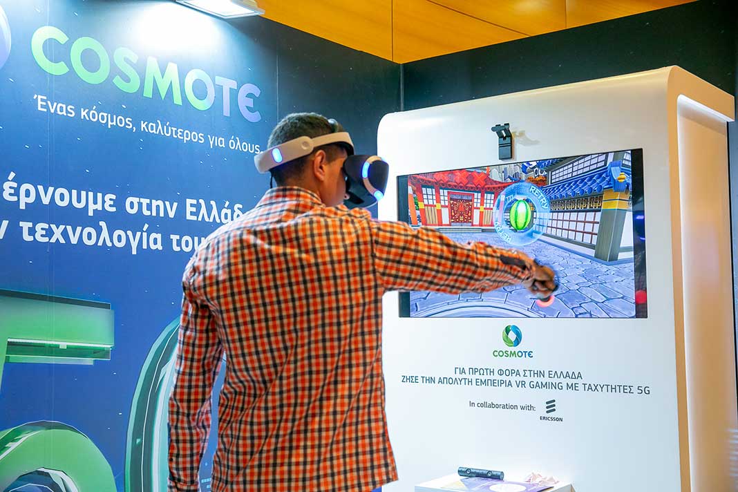 Οι επισκέπτες του περιπτέρου της COSMOTE είχαν επίσης τη δυνατότητα να ζήσουν την κορυφαία εμπειρία immersive gaming «μπαίνοντας οι ίδιοι μέσα στο παιχνίδι» μέσα από μια μάσκα εικονικής πραγματικότητας (VR) και χειριστήρια χειρός, με κορυφαία ποιότητα και χωρίς καμία διακοπή, χάρη στις δυνατότητες του δικτύου 5G. H απόδοση των γραφικών του παιχνιδιού έγινε μέσω Cloud, ανοίγοντας νέους ορίζοντες στο online gaming.