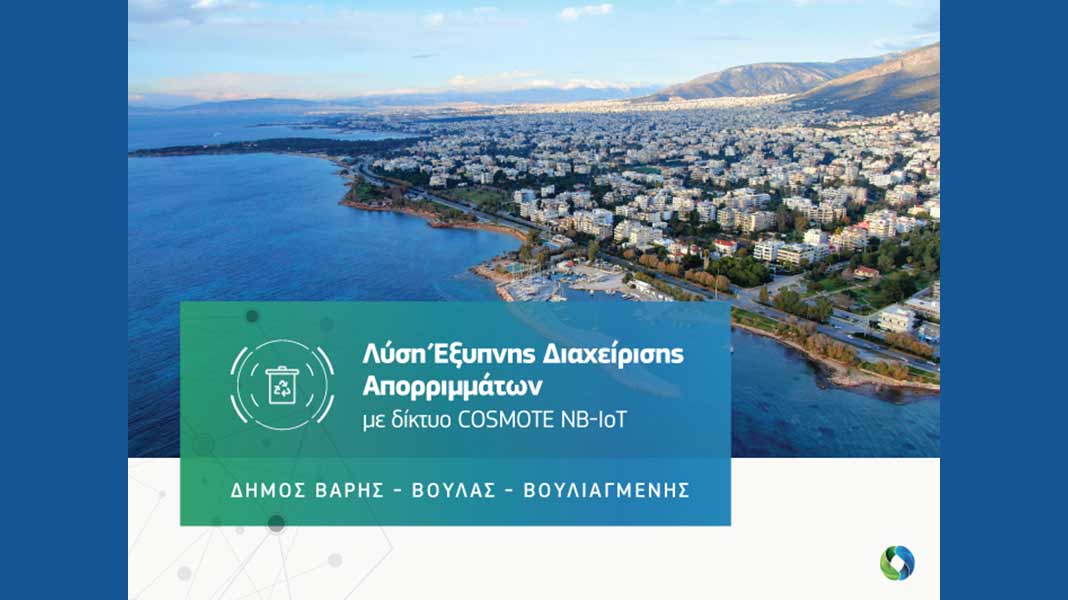 Την COSMOTE επέλεξε ο Δήμος Βάρης Βούλας Βουλιαγμένης, μετά από διεθνή ηλεκτρονικό διαγωνισμό, για την προμήθεια και εφαρμογή συστήματος έξυπνων κάδων αποκομιδής απορριμμάτων. Με την «έξυπνη» διαχείριση απορριμμάτων βελτιώνεται η καθημερινότητα των κατοίκων, ενώ ο Δήμος εξοικονομεί πολύτιμους πόρους και μειώνει τις δαπάνες. Η λύση αξιοποιεί την τεχνολογία Narrow-Band Internet of Things (NB-IoT), καθώς απαιτεί μικρό όγκο δεδομένων για τη διασύνδεση συσκευών μέσω δικτύου κινητής, μειώνοντας δραστικά την κατανάλωση ενέργειας και το κόστος.