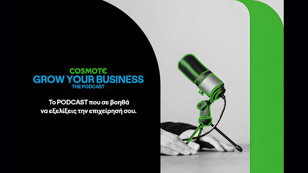 Μια νέα σειρά podcast επεισοδίων για μικρομεσαίες επιχειρήσεις και ελεύθερους επαγγελματίες ξεκινά από την COSMOTE, στο πλαίσιο της πρωτοβουλίας COSMOTE GROW YOUR BUSINESS, που βοηθά τους επαγγελματίες να μεταβούν στην ψηφιακή εποχή και να αναπτυχθούν. Το COSMOTE GROW YOUR BUSINESS – THE PODCAST θα προσφέρει πολύτιμες γνώσεις και πρακτικές συμβουλές σε όλους όσους θέλουν να διευρύνουν τους ορίζοντές τους και να ξεχωρίσουν στο διαρκώς εξελισσόμενο επιχειρηματικό και ψηφιακό περιβάλλον.
