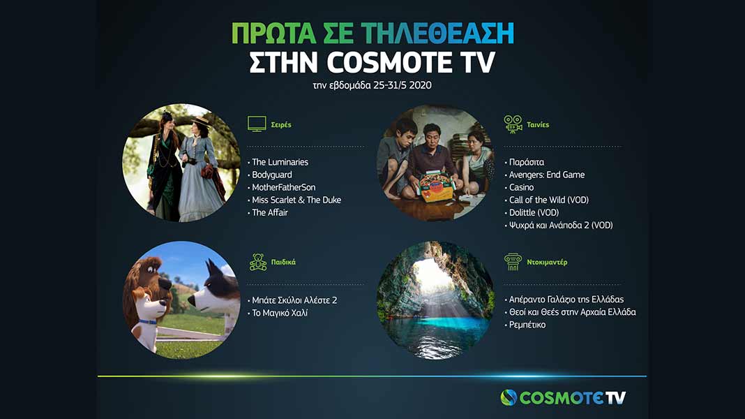 COSMOTE TV: Οι τηλεοπτικές επιλογές του κοινού – Εβδομάδα 25-31/5