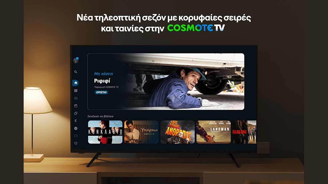 Η νέα τηλεοπτική σεζόν ξεκινά δυναμικά στην COSMOTE TV, με νέες σειρές και νέους κύκλους δημοφιλών σειρών, κινηματογραφικά blockbusters, τη νέα παραγωγή της COSMOTE TV «Ριφιφί» σε σκηνοθεσία Σωτήρη Τσαφούλια, καθώς και συναρπαστικό παιδικό πρόγραμμα για τους μικρούς φίλους. Οι τηλεθεατές θα έχουν «τόσα πολλά να δουν, τόσα πολλά να πουν» με προορισμό τα κινηματογραφικά κανάλια παραγωγής COSMOTE TV (COSMOTE CINEMA 1HD, COSMOTE CINEMA 2HD, COSMOTE SERIES HD, COSMOTE SERIES MARATHON HD), καθώς και τον δωρεάν, On Demand κατάλογό της. Παράλληλα, με τα συνδυαστικά πακέτα «COSMOTE TV & Netflix», οι συνδρομητές μπορούν να αποκτήσουν πρόσβαση στο Netflix, ώστε να απολαμβάνουν κορυφαίες σειρές και ταινίες για όλα τα γούστα.