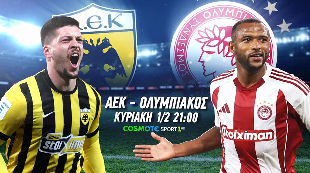 21:00 ΑΕΚ-Ολυμπιακός, Stoiximan Super League, 19η Αγωνιστική, COSMOTE SPORT 1HD & AEK SL PASS & OL SL PASS