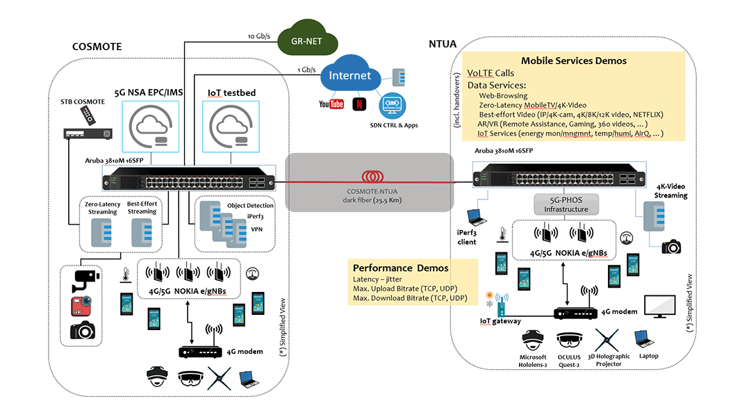 Οι δυνατότητες του υβριδικού δικτύου Fiber-Wireless (FiWi) παρουσιάστηκαν ζωντανά για πρώτη φορά σε πραγματικές συνθήκες, κατά τη διάρκεια του τελικού demo της λύσης 5G-PHOS που πραγματοποιήθηκε στην Πολυτεχνειούπολη Ζωγράφου, παρουσία των εκπροσώπων της Ευρωπαϊκής Επιτροπής. Στο πλαίσιο της επίδειξης σε πληθώρα υπηρεσιών: φωνής (VoLTE), δεδομένων (zero-latency MobileTV/4K-video, ΗD Movie, AR/VR Remote Assistance, AR/VR Gaming, AR/VR 12K 360 videos και IoT εφαρμογές, όπως η μέτρηση κατανάλωσης ενέργειας, περιβαλλοντικές μετρήσεις, αυτοματισμοί, κ.ά., επιβεβαιώθηκε ότι η ενσωμάτωση της λύσης 5G-PHOS σε πραγματικό δίκτυο κινητών τηλεπικοινωνιών, ανταποκρίνεται με επιτυχία στις απαιτήσεις όλων των υπηρεσιών, χωρίς να επηρεάζεται η υψηλή ποιότητα εμπειρίας του χρήστη.