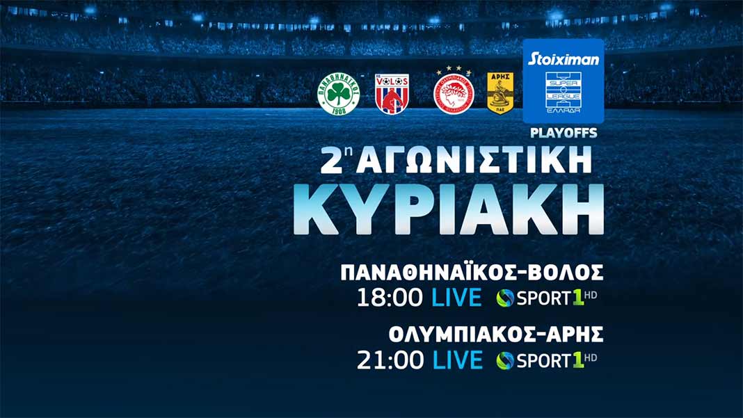 Μετά από μία εβδομάδα ανάπαυλας, τα playoffs και τα playouts της Stoiximan Super League επιστρέφουν με διπλή αγωνιστική, έχοντας ως αποκλειστικό προορισμό τα «γήπεδα» της COSMOTE TV. Την «αυλαία» θα ανοίξουν το Σάββατο 1/4 δυο αγώνες για τα playouts του πρωταθλήματος (Παναιτωλικός-ΠΑΣ Λαμία, 17.30, COSMOTE SPORT 1HD & Ιωνικός-Αστέρας Τρίπολης, 21.00, COSMOTE SPORT 1HD). Την Κυριακή 2/4 το πρόγραμμα της 2ης αγωνιστικής των playoffs, περιλαμβάνει την εντός έδρας αναμέτρηση του πρωτοπόρου Παναθηναϊκού με τον Βόλο ΝΠΣ (18.00, COSMOTE SPORT 1HD), καθώς και το ματς Ολυμπιακός-Άρης (21.00, COSMOTE SPORT 1HD).