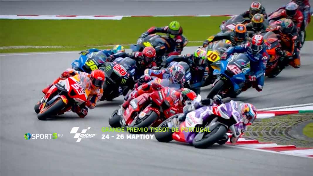 H νέα σεζόν του Παγκοσμίου Πρωταθλήματος MotoGP είναι γεγονός και ανοίγει «αυλαία» ζωντανά και αποκλειστικά στην «πίστα» της COSMOTE TV. Ειδικότερα, το τριήμερο 24-26/3 οι λάτρεις των δύο τροχών θα απολαύσουν πλούσια μηχανοκίνητη δράση από τη μεγάλη πρεμιέρα της Πορτογαλίας. Όλη η μηχανοκίνητη δράση από τις πρώτες ελεύθερες δοκιμές της Παρασκευής 24/3 (12.40) μέχρι και τον αγώνα της Κυριακής 26/3 (15.30), θα μεταδοθεί από το COSMOTE SPORT 5HD.