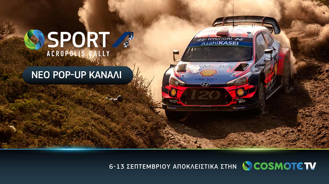 Το «COSMOTE SPORT ACROPOLIS RALLY», ένα νέο pop-up κανάλι αφιερωμένο στο «Ράλλυ των Θεών», έρχεται στην COSMOTE TV από τις 6 έως τις 13 Σεπτεμβρίου. Το EKO Ράλλυ Ακρόπολις επιστρέφει στο «καλεντάρι» του WRC έπειτα από 8 χρόνια απουσίας και οι συνδρομητές της COSMOTE TV θα έχουν στη διάθεσή τους, καθημερινά, πλούσια κάλυψη από την αγωνιστική δράση, αφιερώματα και την ειδική εκπομπή «Acropolis Rally Show» με συνεντεύξεις των πρωταγωνιστών και όλο το ρεπορτάζ από την έμπειρη δημοσιογραφική ομάδα των καναλιών COSMOTE SPORT.