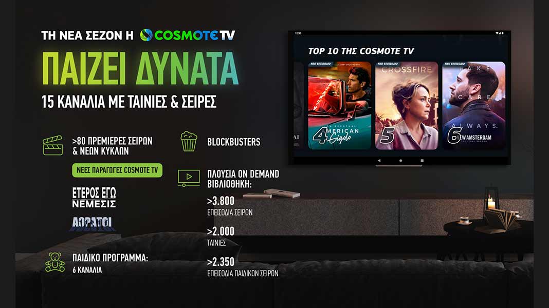 COSMOTE TV: Νέα τηλεοπτική σεζόν με περισσότερες από 80 πρεμιέρες σειρών, blockbusters και πλούσιο παιδικό πρόγραμμα