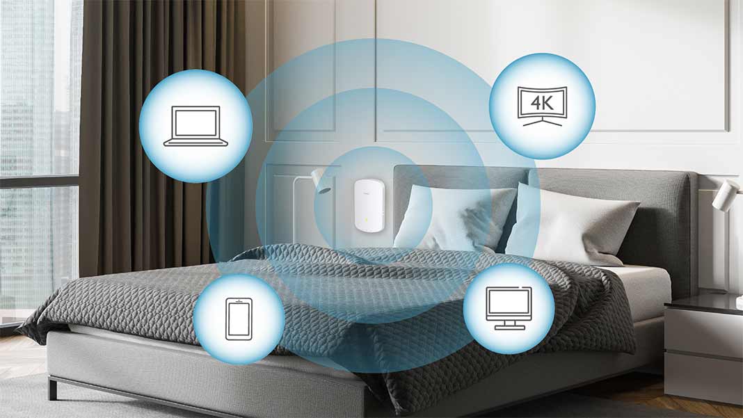- Φιλοξενία (Hospitality) Βελτιστοποιημένο για δωμάτια και σουίτες επισκεπτών, το DAP-X3060W προσφέρει απρόσκοπτο Wi-Fi υψηλής ταχύτητας και κάλυψη ειδικά για το δωμάτιο, χωρίς παρεμβατικό υλικό. Οι πολλαπλές θύρες LAN υποστηρίζουν συσκευές εντός δωματίου, ενώ η τμηματοποίηση VLAN και η ασφάλεια WPA3 διασφαλίζουν το απόρρητο των επισκεπτών και την προστασία του δικτύου του ξενοδοχείου.