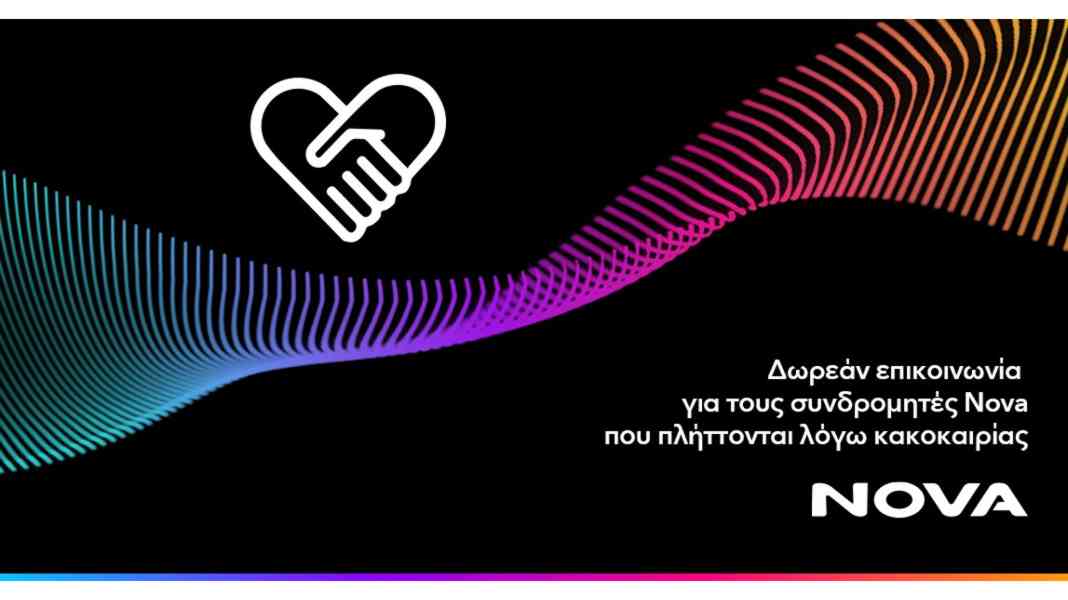 Η Nova, μέλος της United Group, του κορυφαίου παρόχου τηλεπικοινωνιών και media στη Νοτιοανατολική Ευρώπη, κατανοώντας τις αυξημένες ανάγκες επικοινωνίας στις περιοχές που έχουν πληγεί από τα ακραία καιρικά φαινόμενα των τελευταίων ημερών, ενημερώνει τους συνδρομητές της ότι βρίσκεται κοντά τους με δωρεάν υπηρεσίες επικοινωνίας.