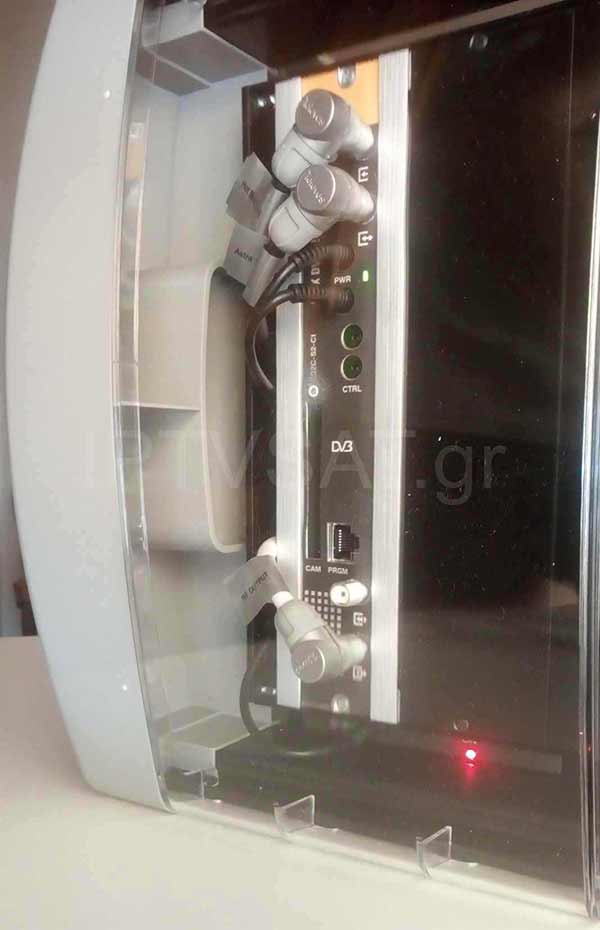 Οι δύο είσοδοι του transmodulator 564301, διαθέτουν συνδεδεμένες –  στην έκδοση που δοκιμάσαμε – δύο επεκτάσεις ομοαξονικών καλωδίων με ετικέτα για Hot Bird & Astra, για περισσότερη ευκολία στη σύνδεση των καθόδων από την δορυφορική εγκατάσταση, ενώ η έξοδος RF διαθέτει επίσης μία επέκταση ομοαξονικού καλωδίου για άμεση σύνδεση με τον κεντρικό ενισχυτή προς το ομοαξονικό καλωδιακό δίκτυο του ξενοδοχείου. Επίσης, από το πίσω μέρος της καμπίνας, είναι άμεσα διαθέσιμο και το καλώδιο της τροφοδοσίας, με αποτέλεσμα ο συνολικός χρόνος για τις συνδέσεις να είναι ελάχιστος.