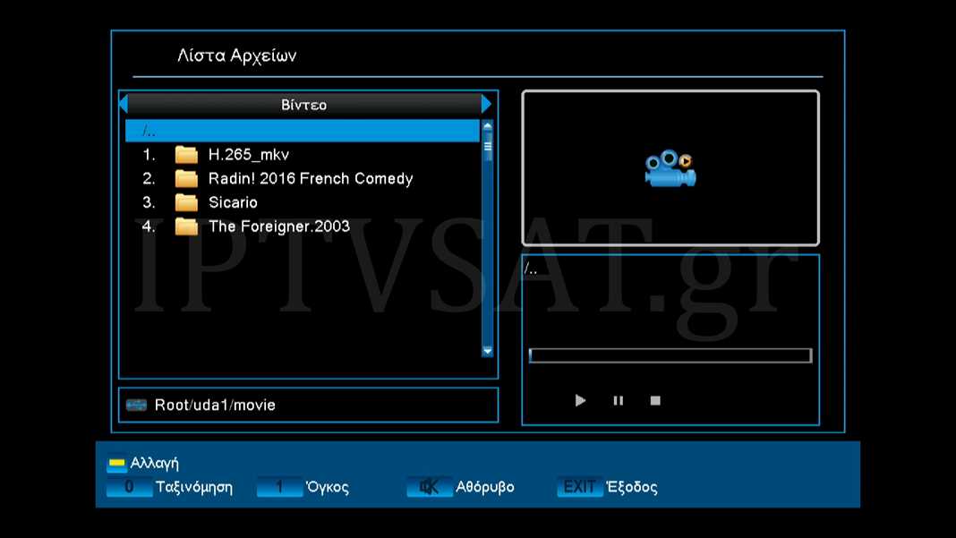 Για αναπαραγωγή video, επιλέγουμε «Βίντεο» στη Λίστα Αρχείων και στη συνέχεια το αρχείο που επιθυμούμε στον όποιο φάκελο μπορεί να βρίσκεται.
