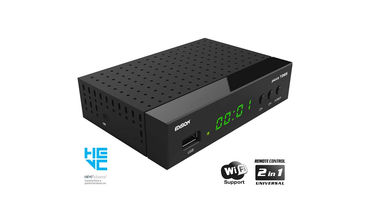 Ο Edision Picco T265 ανήκει στη νέα γενιά επίγειων ψηφιακών δεκτών, είναι εξοπλισμένος με τα σύγχρονα χαρακτηριστικά DVB-T2 & HEVC/H.265, διαθέτει το πλεονέκτημα της δυνατότητας πρόσβασης στο internet μέσω USB WiFi κι όλα αυτά σε μικρές και βολικές διαστάσεις!